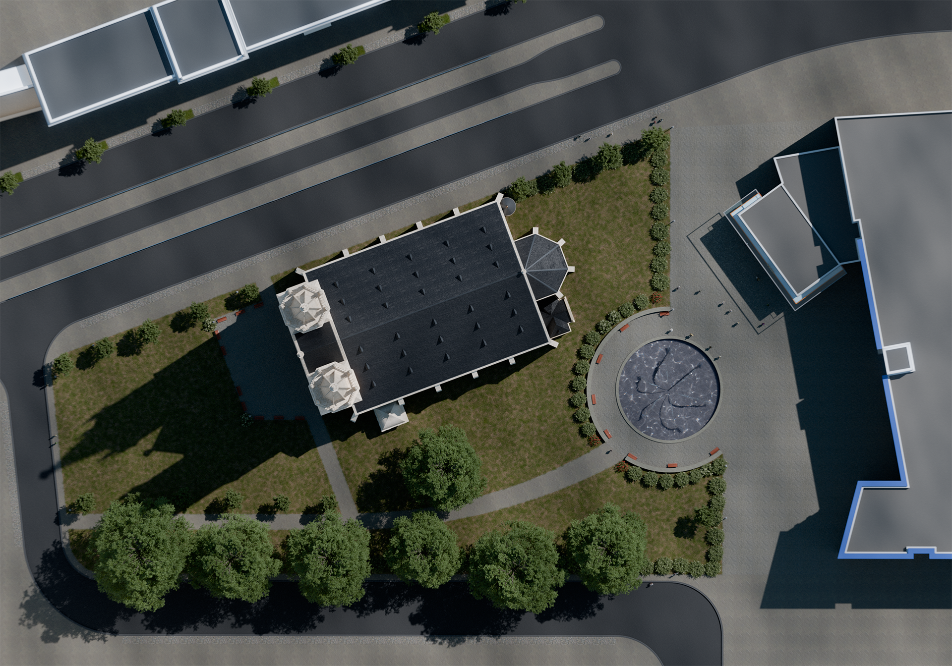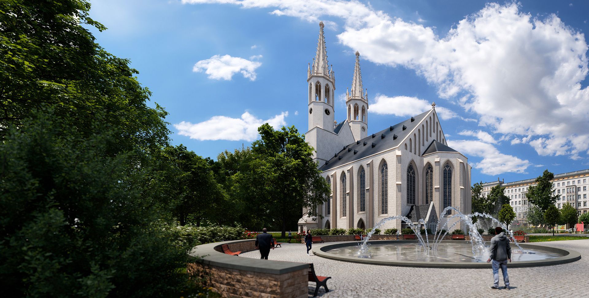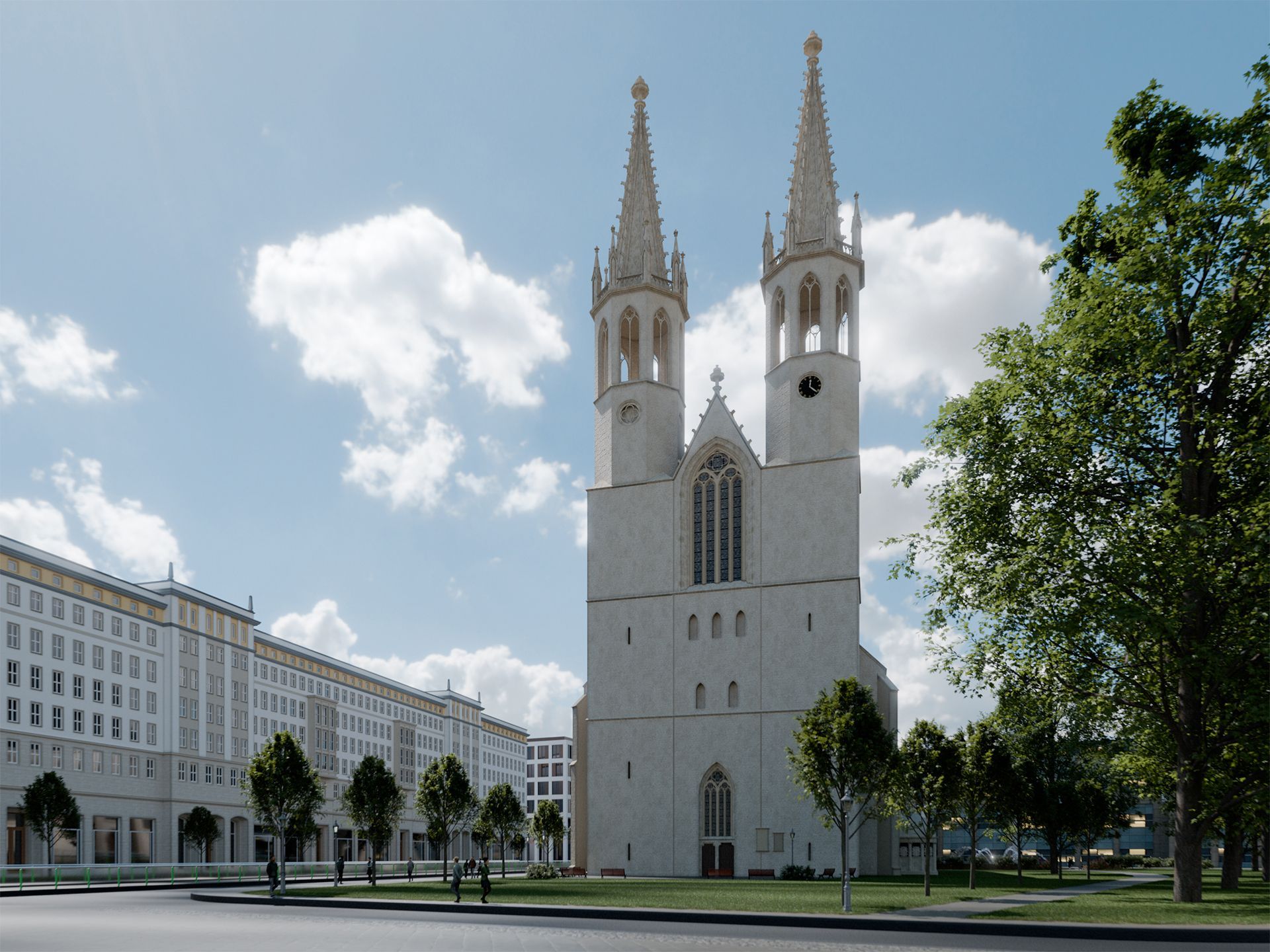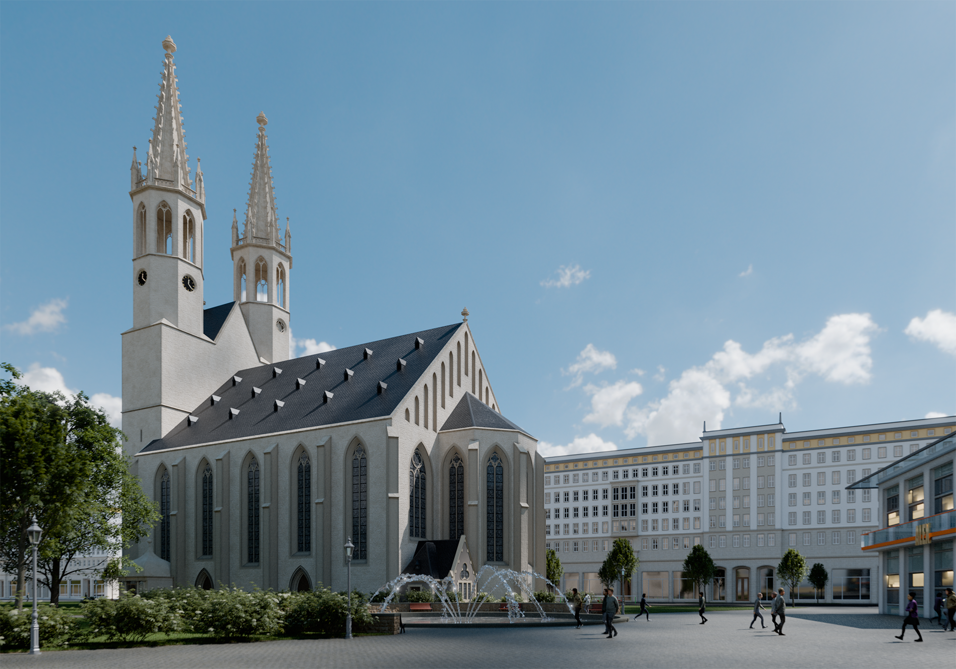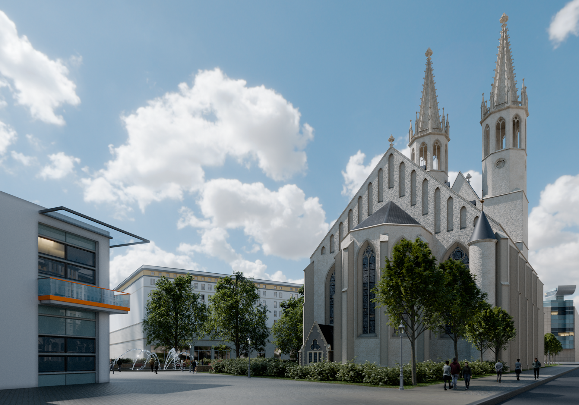 Abbildungen: 3D-Visualisierungen von St. Ulrich und Levin (ULRICHLEVIN) auf dem Ulrichplatz am Originalstandort von Pascal Zufelde